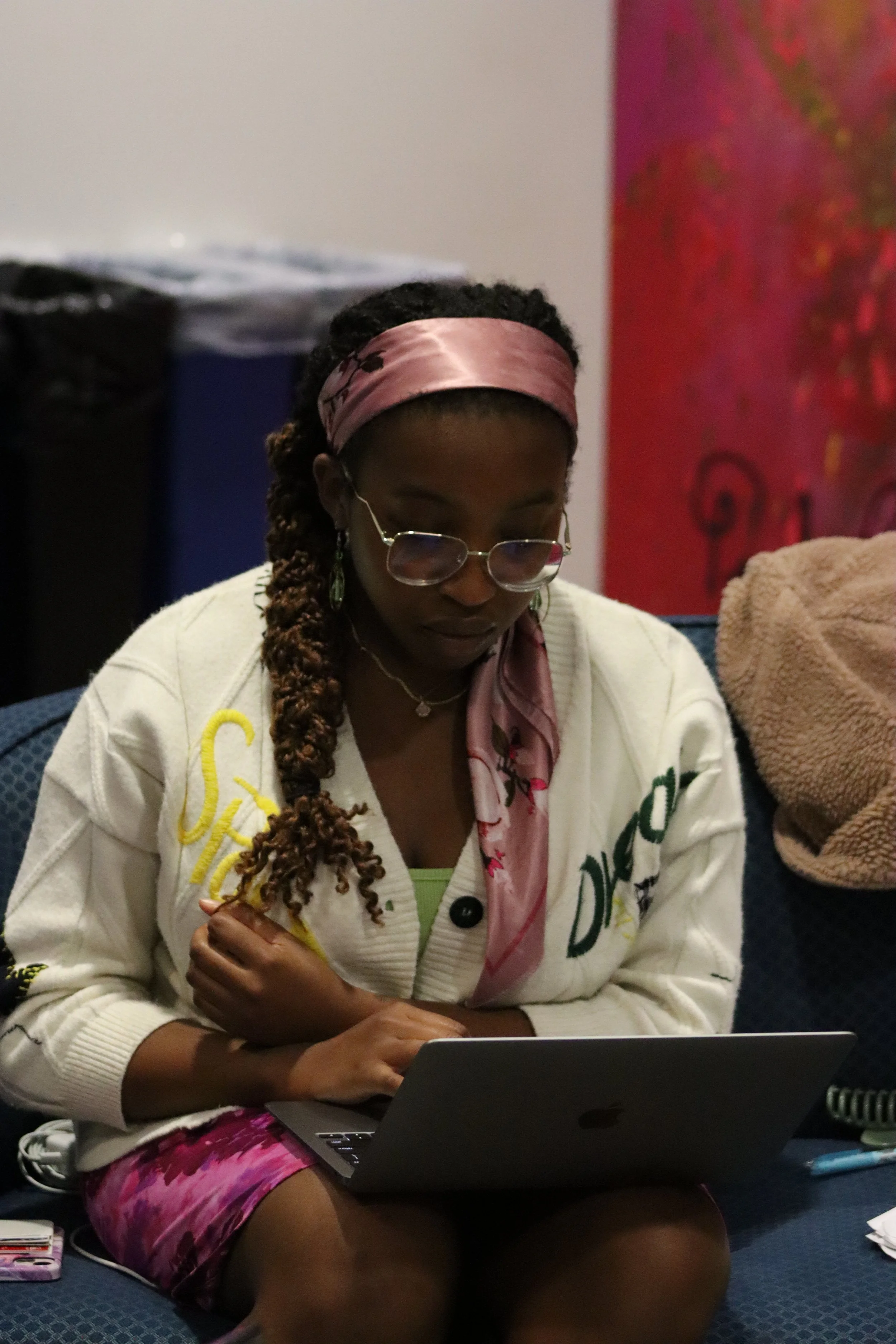 A senior Film & Media Studies student. Quiet, angry, cracks her knuckles a lot.